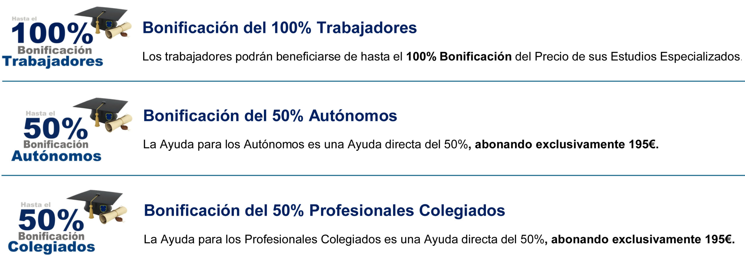 *Estas Bonificaciones son aplicables a un Máximo de 20 Alumnos por Convocatoria. Consulte Condiciones para acceder a la Bonificación
