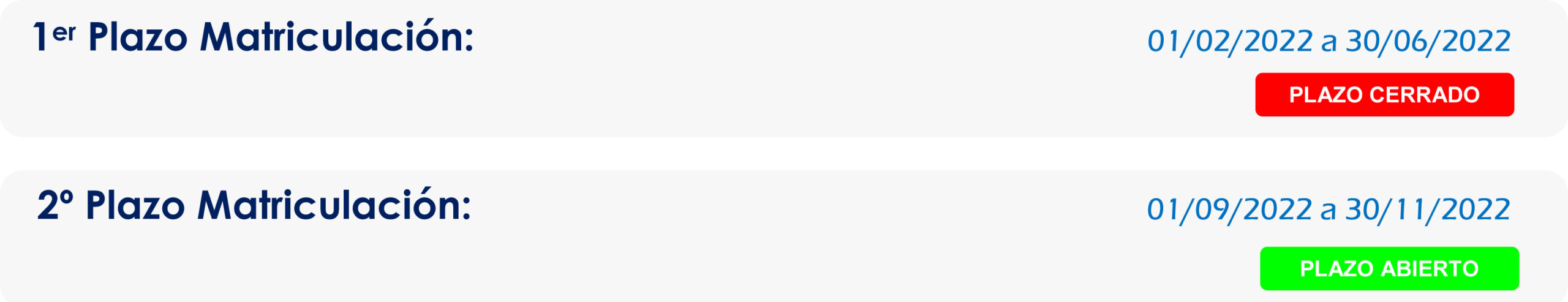 El Claustro Académico ha establecido Dos Convotarias de Matriculación en los Programas de Cursos Superiores: